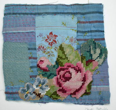 Mandy Pattullo treasures the old and worn and in particular the utility patchworks and quilts made in domestic settings which relate to the thrift and ‘make do and mend’ culture of past times. She collects quilts which are past their best and uses parts of these and other old textiles to create new patchworks. The precious fragments of disintergrating textiles and unpicked surfaces form evocative compositions which force the viewer to re-examine fabrics that have become flawed through wear and tear, to find in them a new beauty.