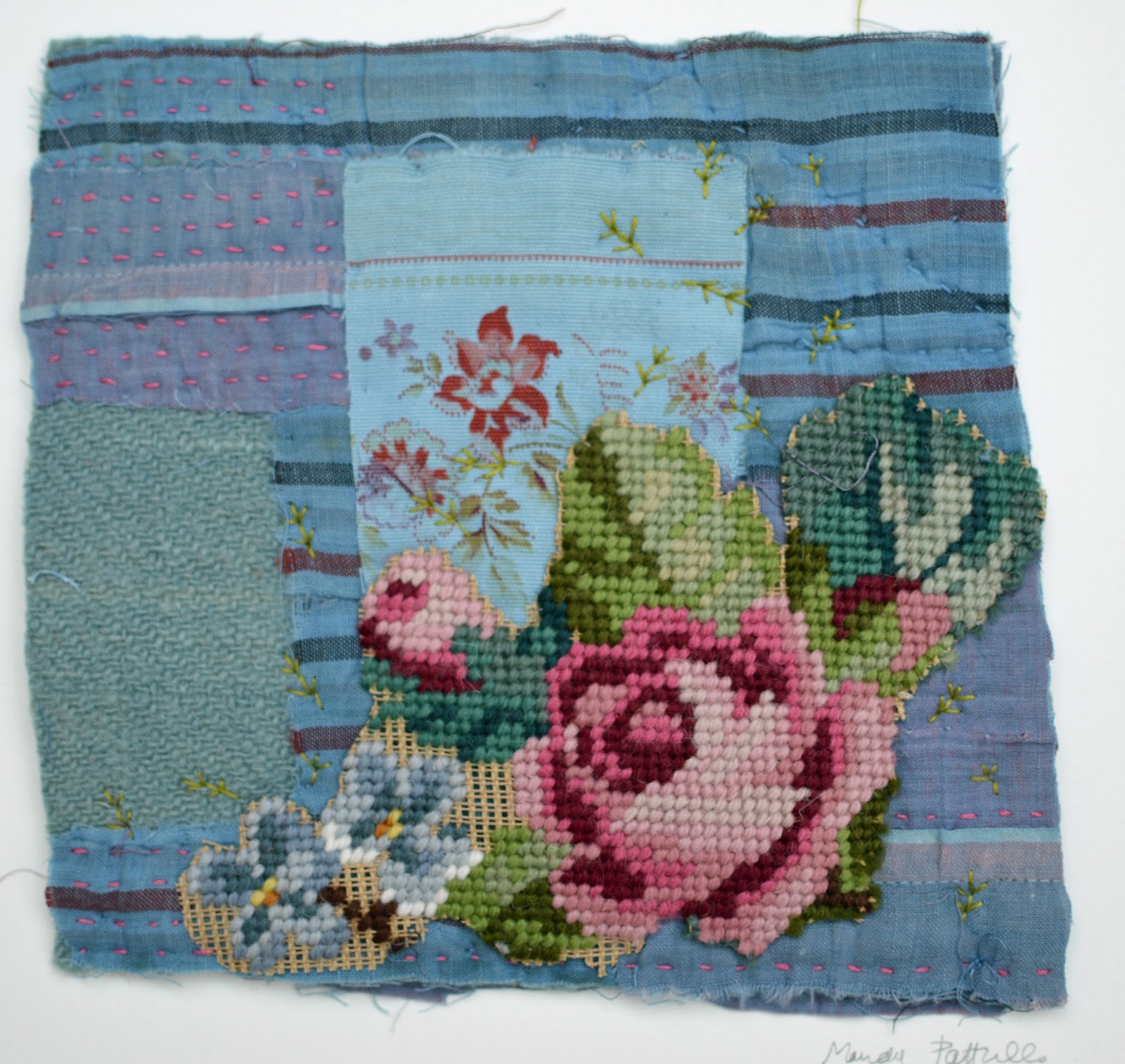 Many of the old quilts that come to me are barely there and I have to patch on to the top of them to keep them together. This is the tradition of generations of women who patched over patchwork to make things last longer. I am afraid my pieces are not functional but just pretty things to hang on the wall but I love knowing that little bits of the stories pass in to others hands. I don't usually sell my more abstract pieces but in 2017 I am going to let more go so am putting it over on ETSY now.
