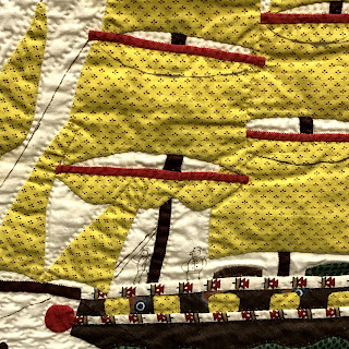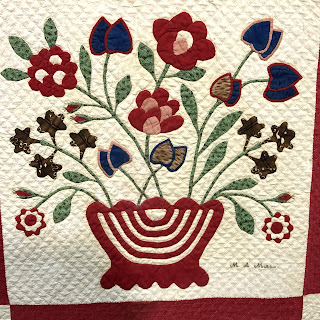 I have been to The Festival of Quilts today and the highlight of my day was to see the very old Baltimore Album quilts up close. What was new to me was the drawing in Indian ink on to petals and to add details here and there. I have never seen this detail through reproductions in books. It made me want to go off and do even more appliqué and I hope looking at my photos makes you feel the same way!